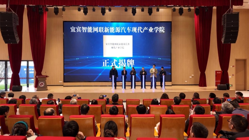 校党委委员、副院长廖益均详细介绍了宜宾智能网联新能源汽车现代产业学院的成立背景及未来展望。在热烈的掌声中,市经济和信息化局党组成员局长张爱春校长黄晓燕,以及凯翼汽车、宜云智联等企业代表共同为“宜宾智能网联新能源汽车现代产业学院”揭牌。